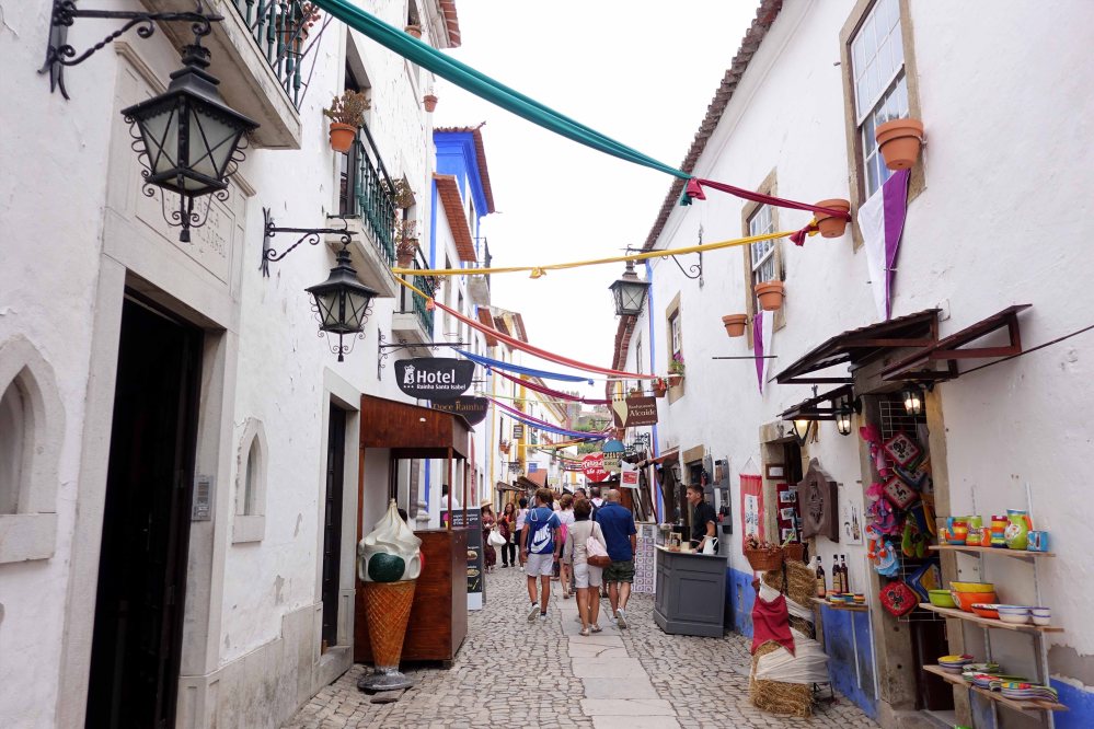 Obidos is one of the most picturesque towns in Portugal. The compact town center is filled with cobbled streets and traditionally painted houses. We walked to the main street full of shops. Mostly chocolate and ceramic souvenirs are being sold here.