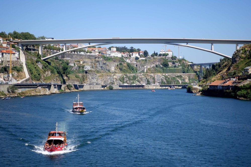 At the meeting place, we were greeted by a guide who was to walk us from winery to winery. However, once we proceeded, Elly needed a toilet. Badly. The very nice female guide rushed with Elly ahead of the group to the first tasting place. Everyone else leisurely crossed the beautiful bridge towards Vila Nova de Gaia, but now using the lower level.
