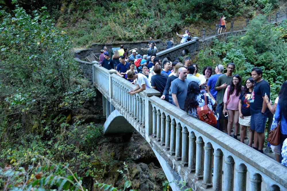 We arrived to the most famous of them all! The Multnomah Falls. With a height of 620 feet, this one is the most impressive. They have a beautiful wooden lodge at the entrance with a nice snack bar and ranger station. This cabin was almost lost in the recent fires that started just one day after we visited so we felt extra lucky we got to go this day.