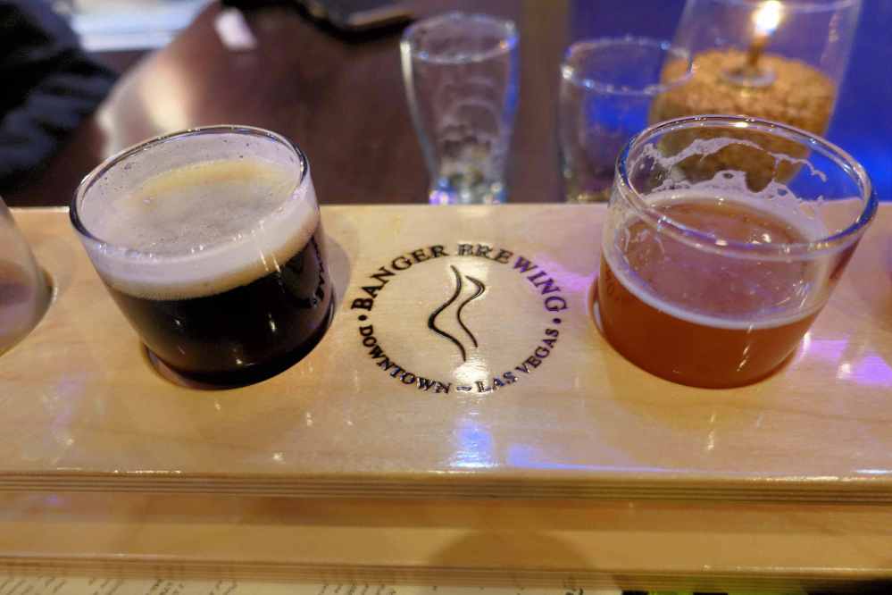 We heard about the old Vegas in downtown, so we took an Uber to check it out. We first stopped at the Banger brewery to have a flight of beers!