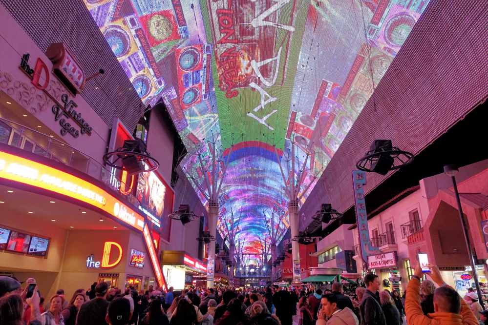 While Las Vegas is known for never turning the outside casino lights off, each show begins by turning off the lights on all of the buildings, including the casinos, under the canopy. Before each show, one bidirectional street that crosses the Experience is blocked off for safety reasons.