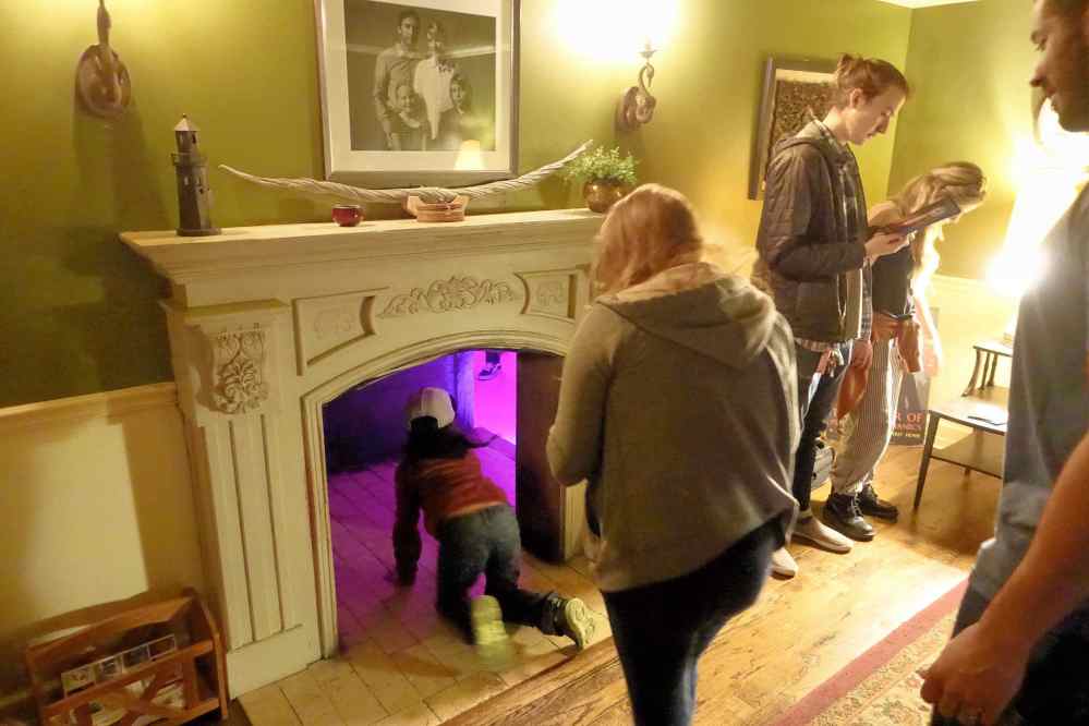This place is basically a maze where you can touch everything, play with everything and just try to find your way around. We started by entering the other dimension by crawling though the fireplace.