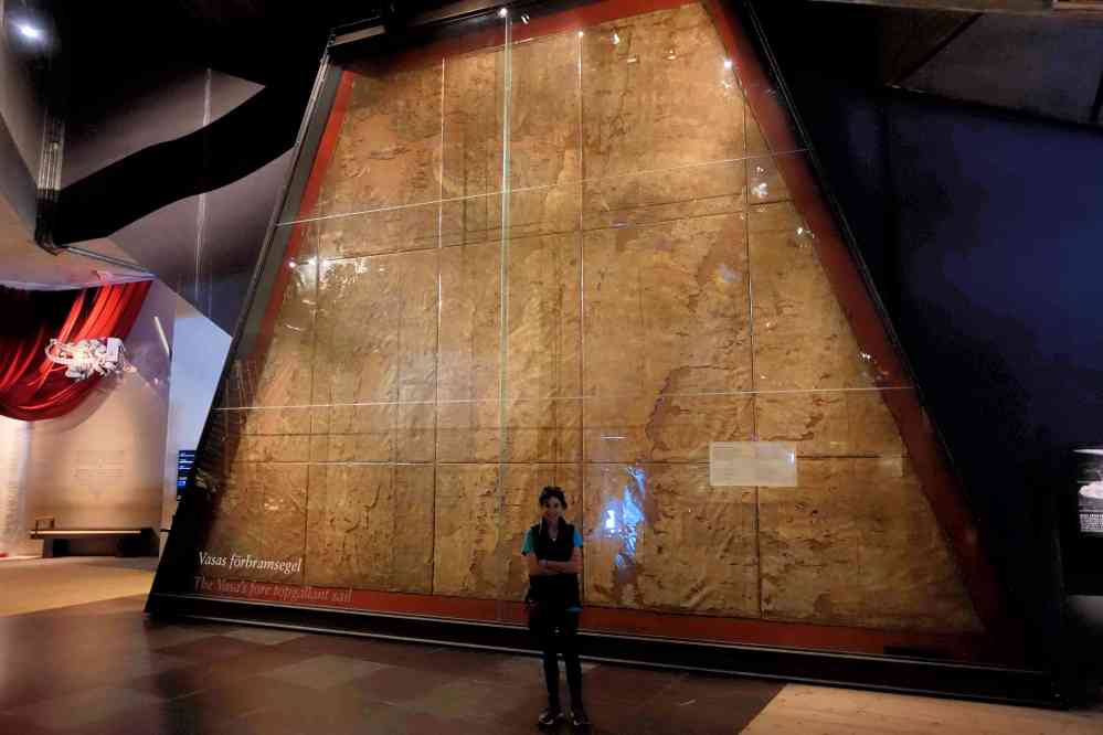 This is the smallest of the sails on display. The sails were made mostly of hemp and partly of flax. At the gift shop, I actually bought a piece of paper that was made from another one of these sails that was in such bad condition that could not be displayed. Now they sell these as souvenirs to help pay for the restoration!
