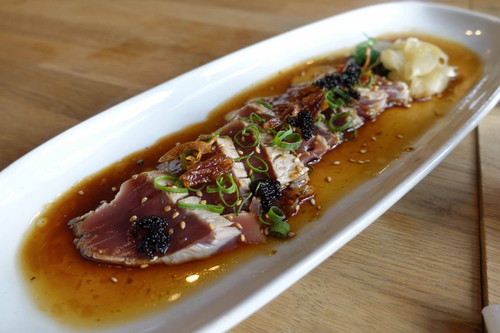 The sushi was superb. Interestingly, spicy tuna in Norway does not mean the same as in the U.S…. They use big chunks of tuna (like poke) with some sriracha sauce. We also got some lime-chili seared tuna.