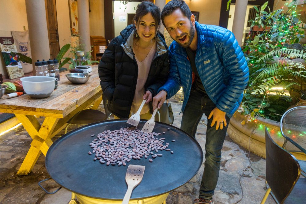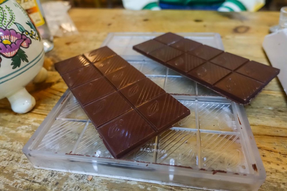 We did absolutely everything, from selecting the best cocoa beans, toasting them, peeling, grinding, and melting them into a mold to create the final bar. We chose to make a 70% cacao bar.