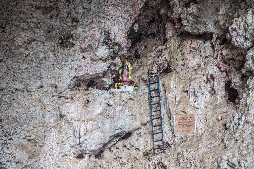 This is the Cave of the Colors and the Virgin of Guadalupe. Every year, they take the statue to the main church in the town of Chiapa de Corzo and there is a huge peregrination with hundreds of boats.