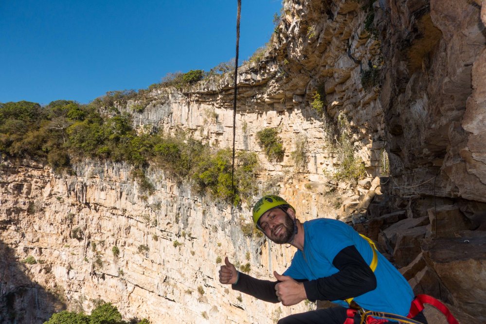 One other girl joined us at the end and once I got to the bottom first, I noticed her rope was not long enough to reach the bottom. The guide first tried to expand the rope by hanging into it, but after realizing that it does not work, he just climbed a little bit to grab and carry the girl a few feet of the ground. This did not give any hope of surviving to Eitan for the way up.
