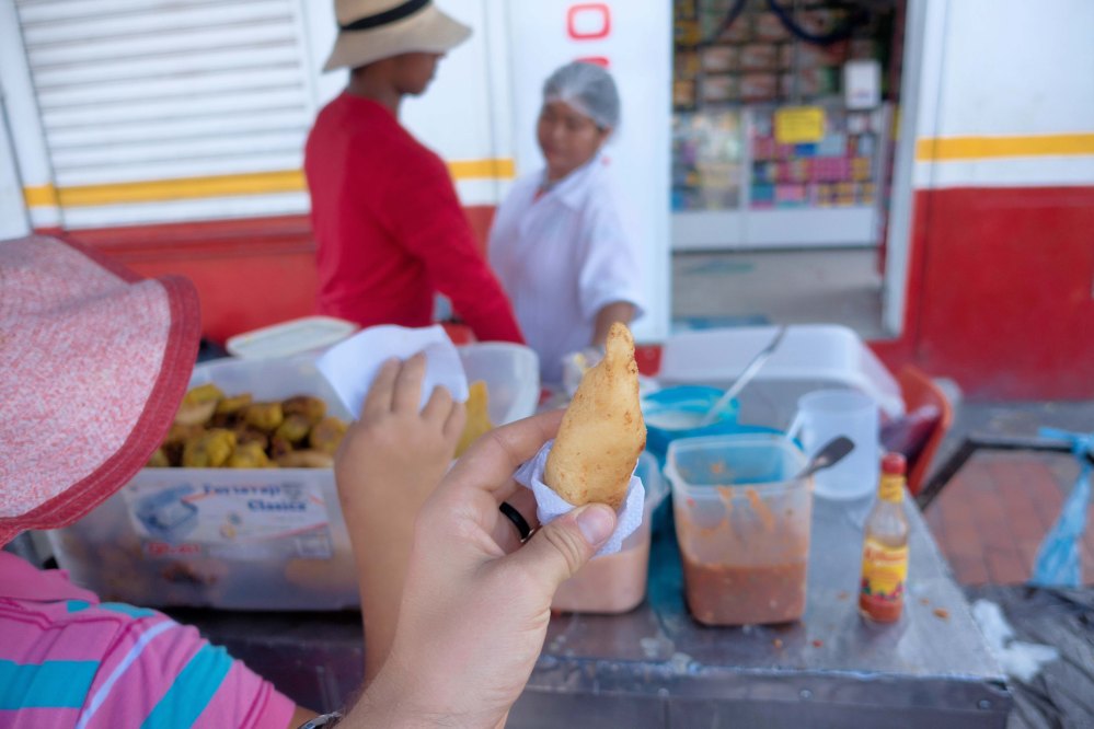 The arepa de huevo is practically an institution in Cartagena. Thicker than your average arepa, it is stuffed with egg and ground beef. It’s a popular Cartagena breakfast on the go, and with lots of grease, a pretty good hangover cure as well. The arepa de huevo is also a great mid-afternoon or late night snack. They can be bought from mobile vendors or, even better, from street side fry stalls. Of course, we tried one!