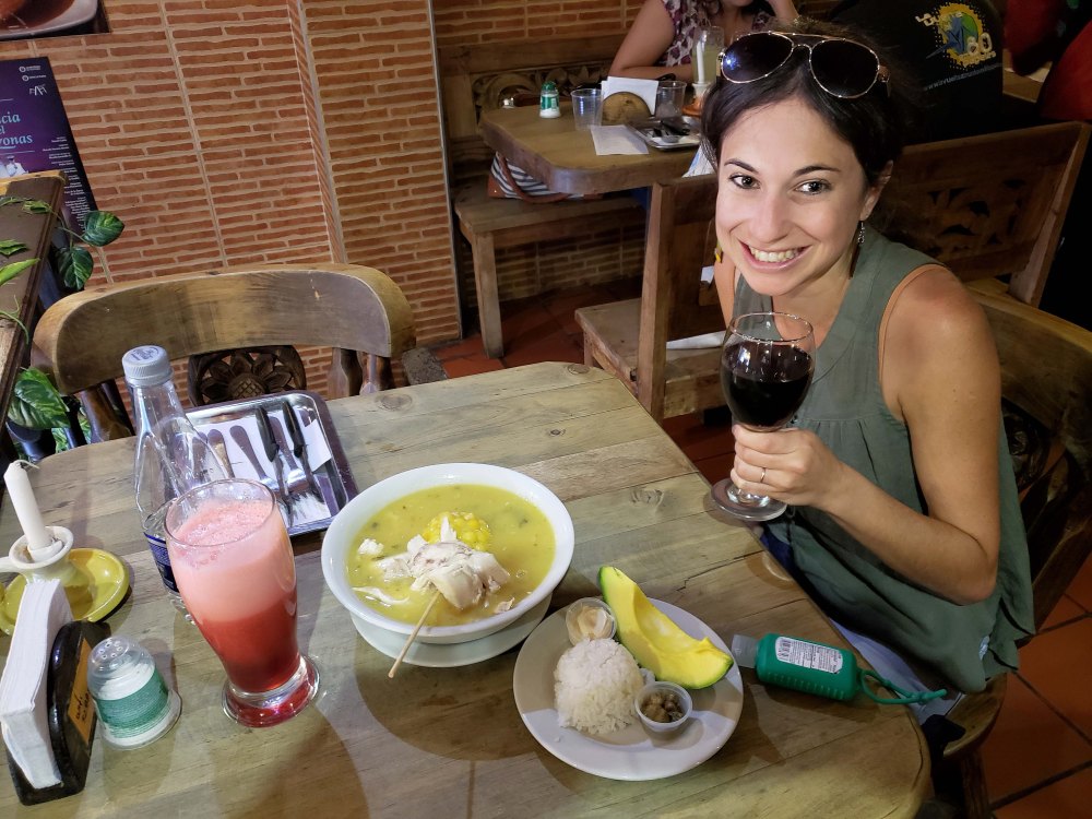 We found a great little place to eat some lunch. We got the famous Ajiaco soup and some drinks. Look at the size of that avocado!