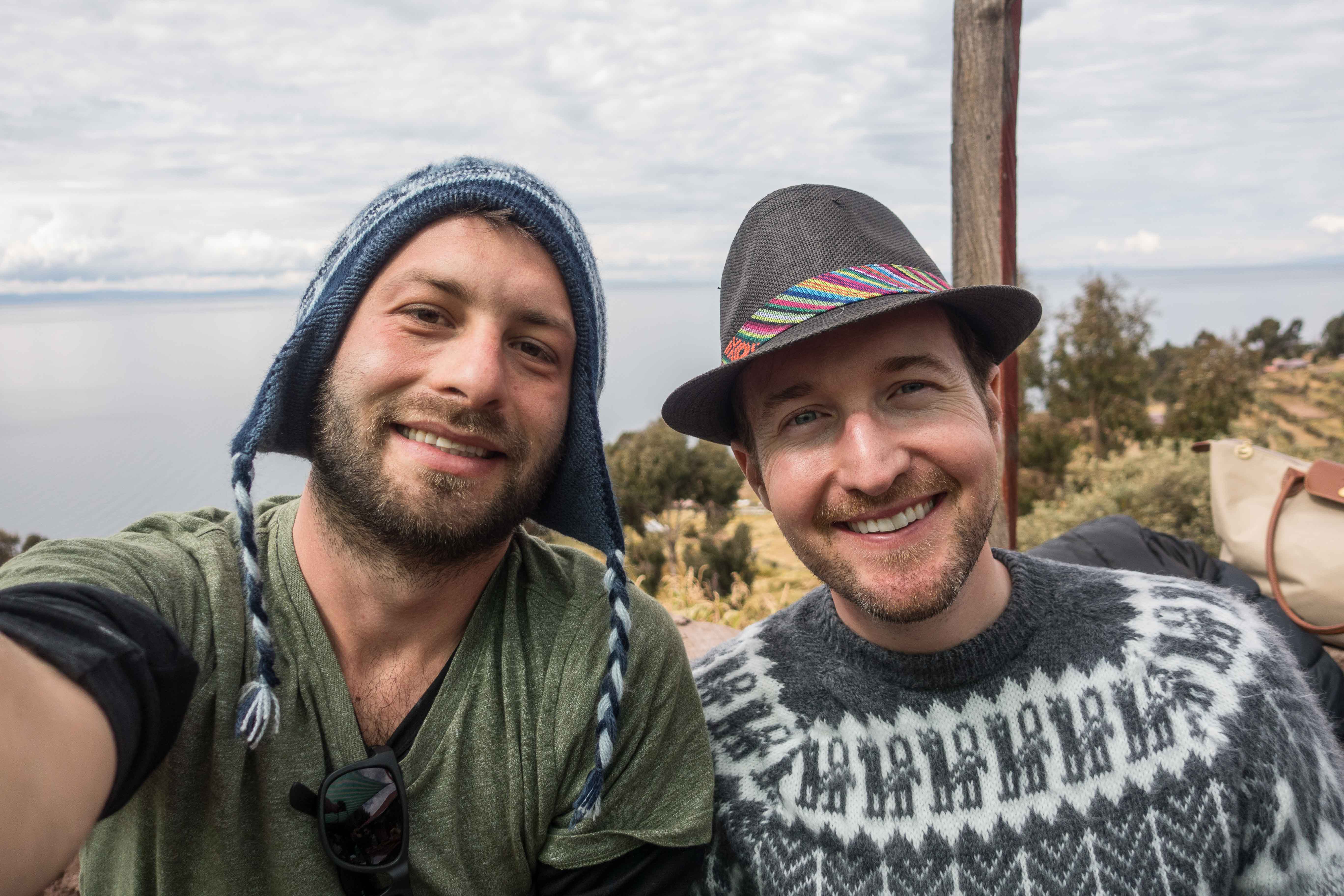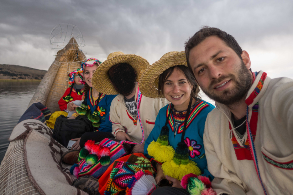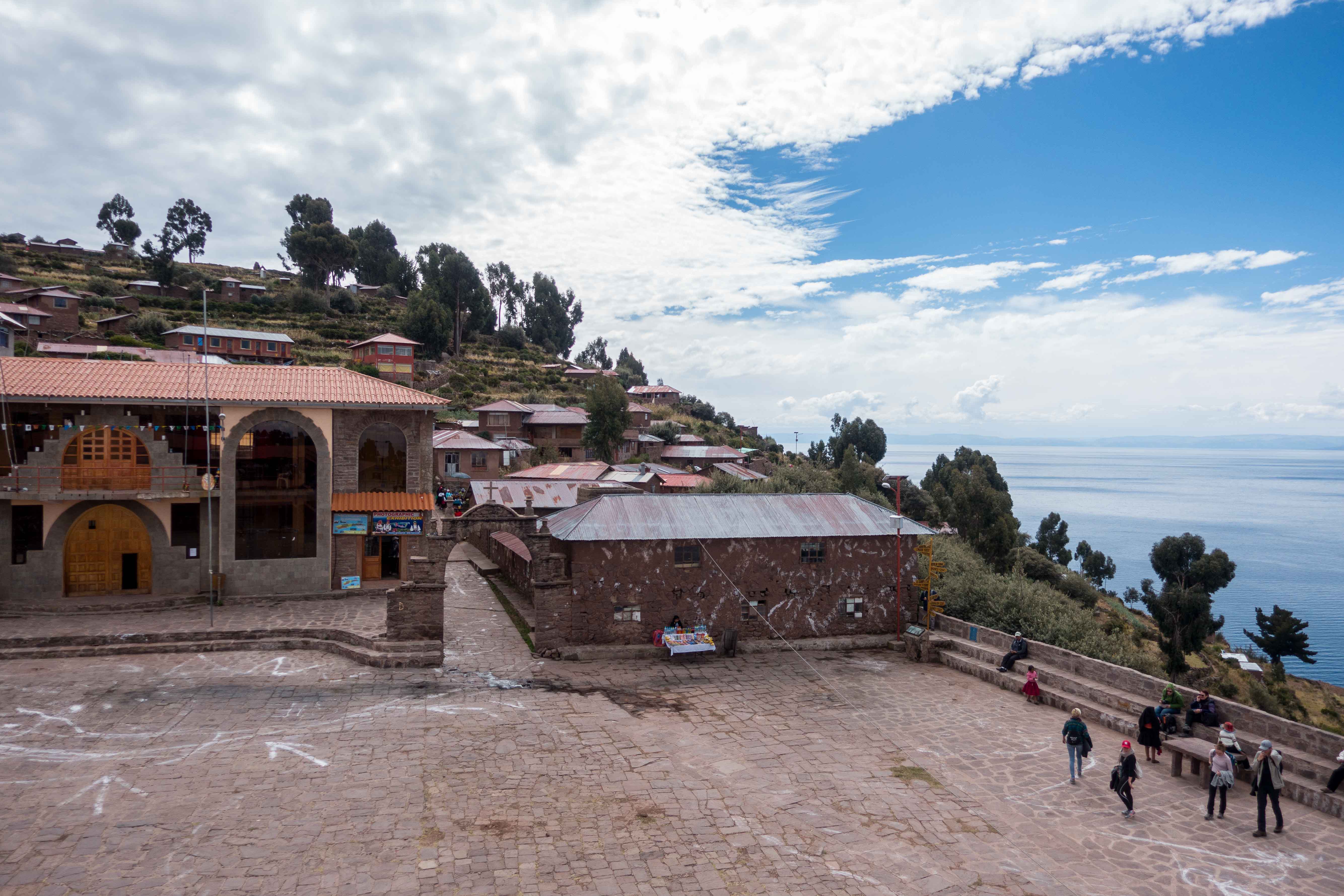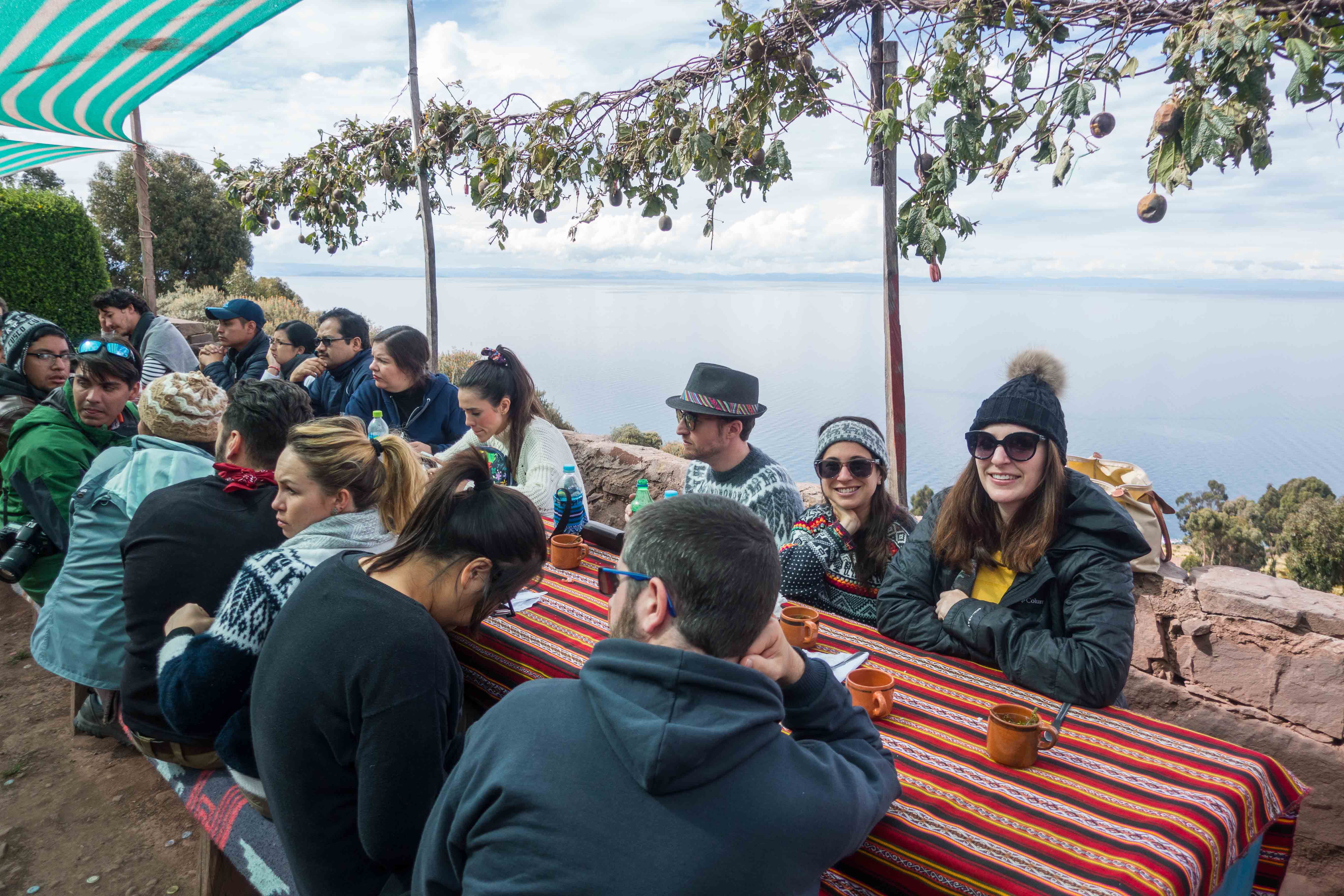 Thomas chilling after boarding the ferry at the tourist trap island! This island is full of souvenir shops, a restaurant and toilets. But it was needed to stop here to get in the ferry that will take us to Taquile Island.