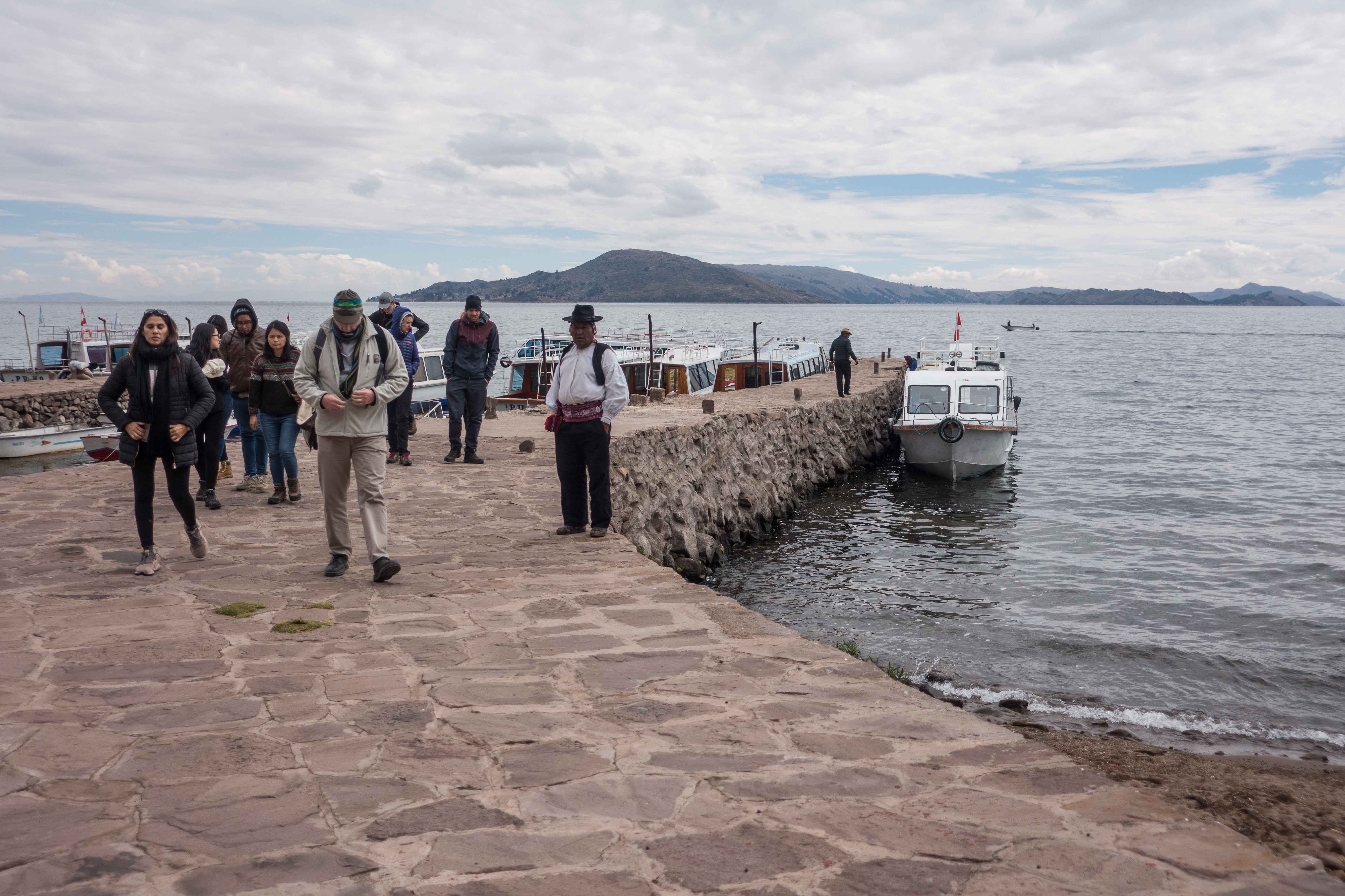 After arriving to Puno’s bus station, our guide picked us up and transported us to the pier where we would be taking the boat to the Uros islands. By Pier, I mean somewhere in the middle of the road with access to the water where a boat could dock. There was really nothing else there.