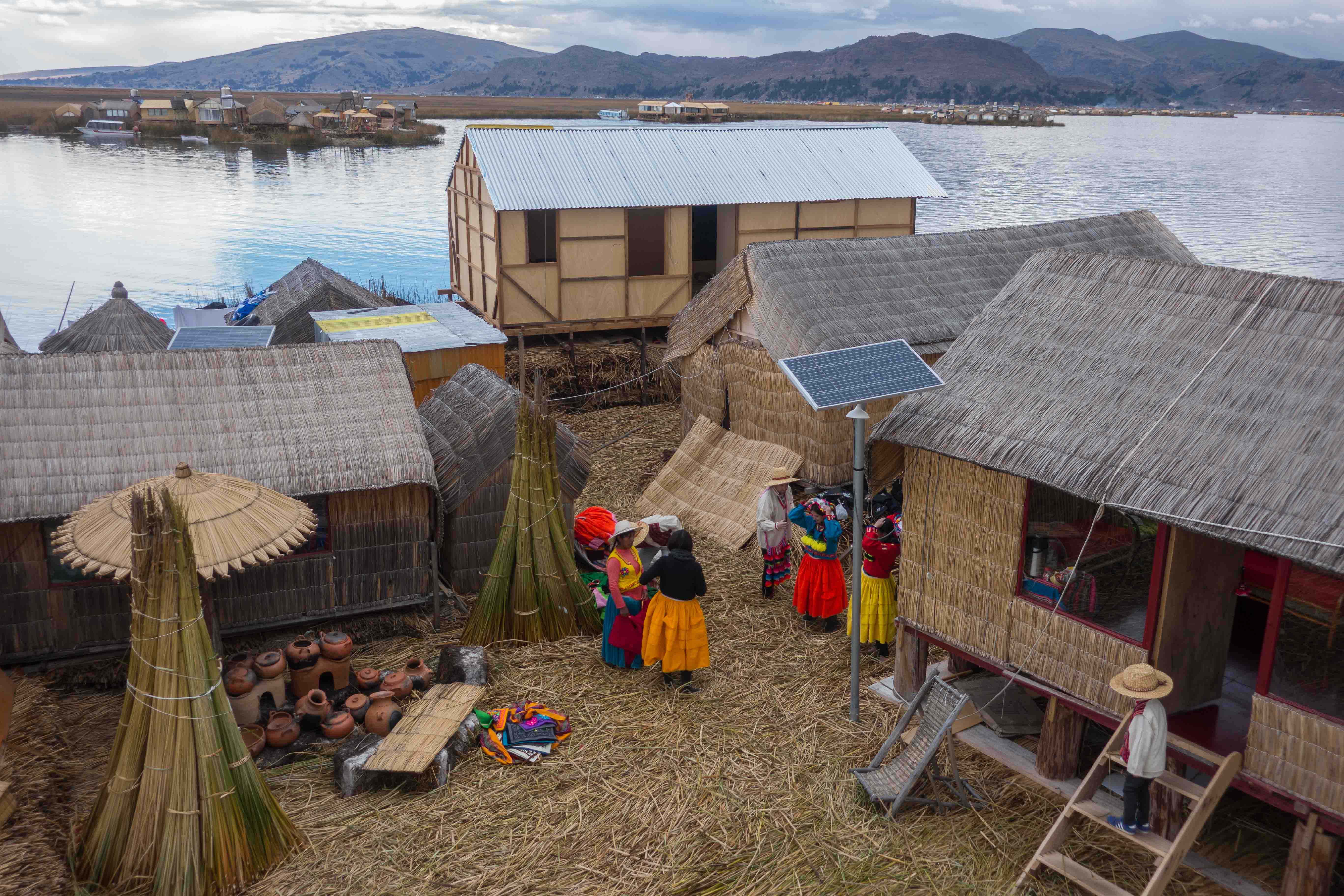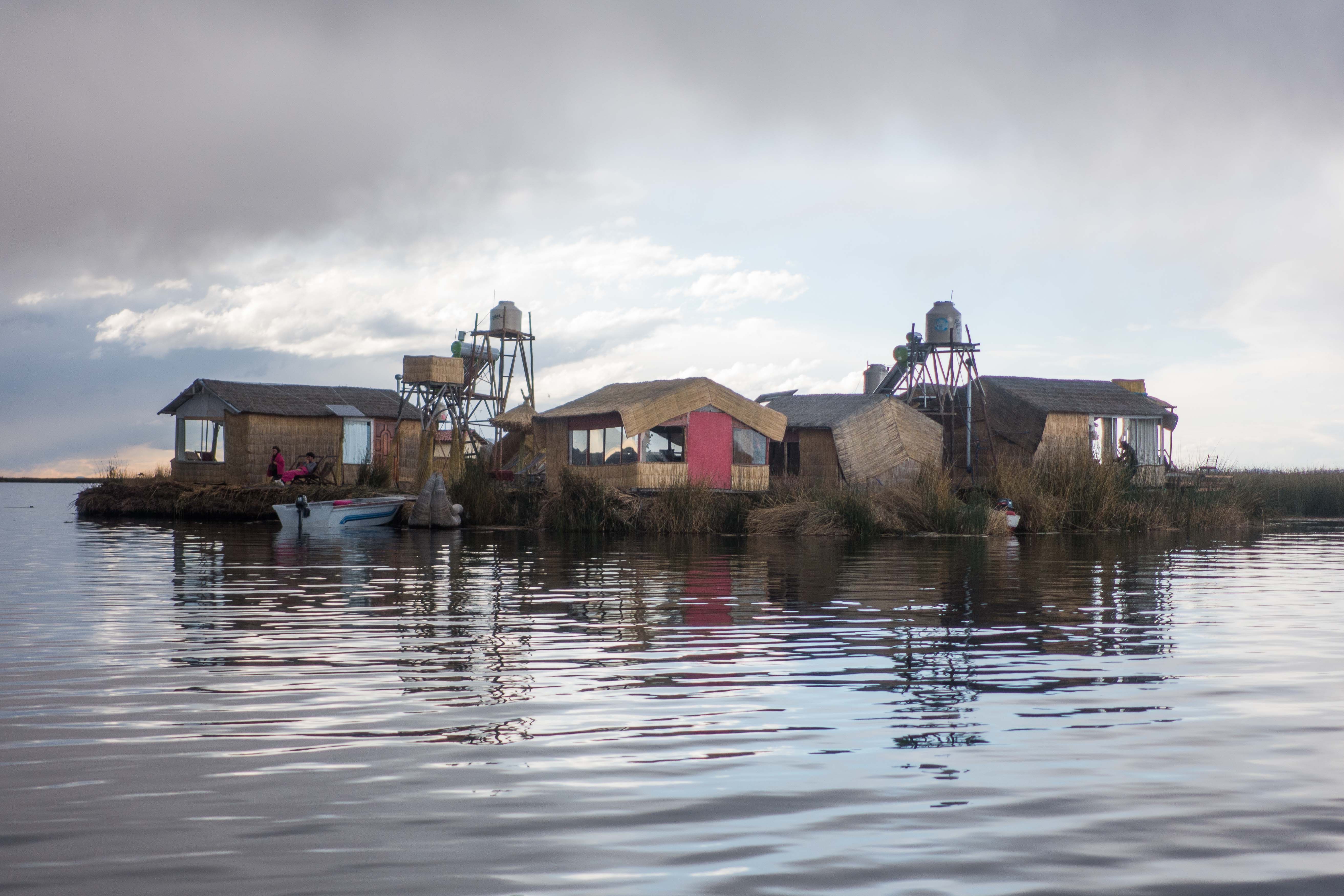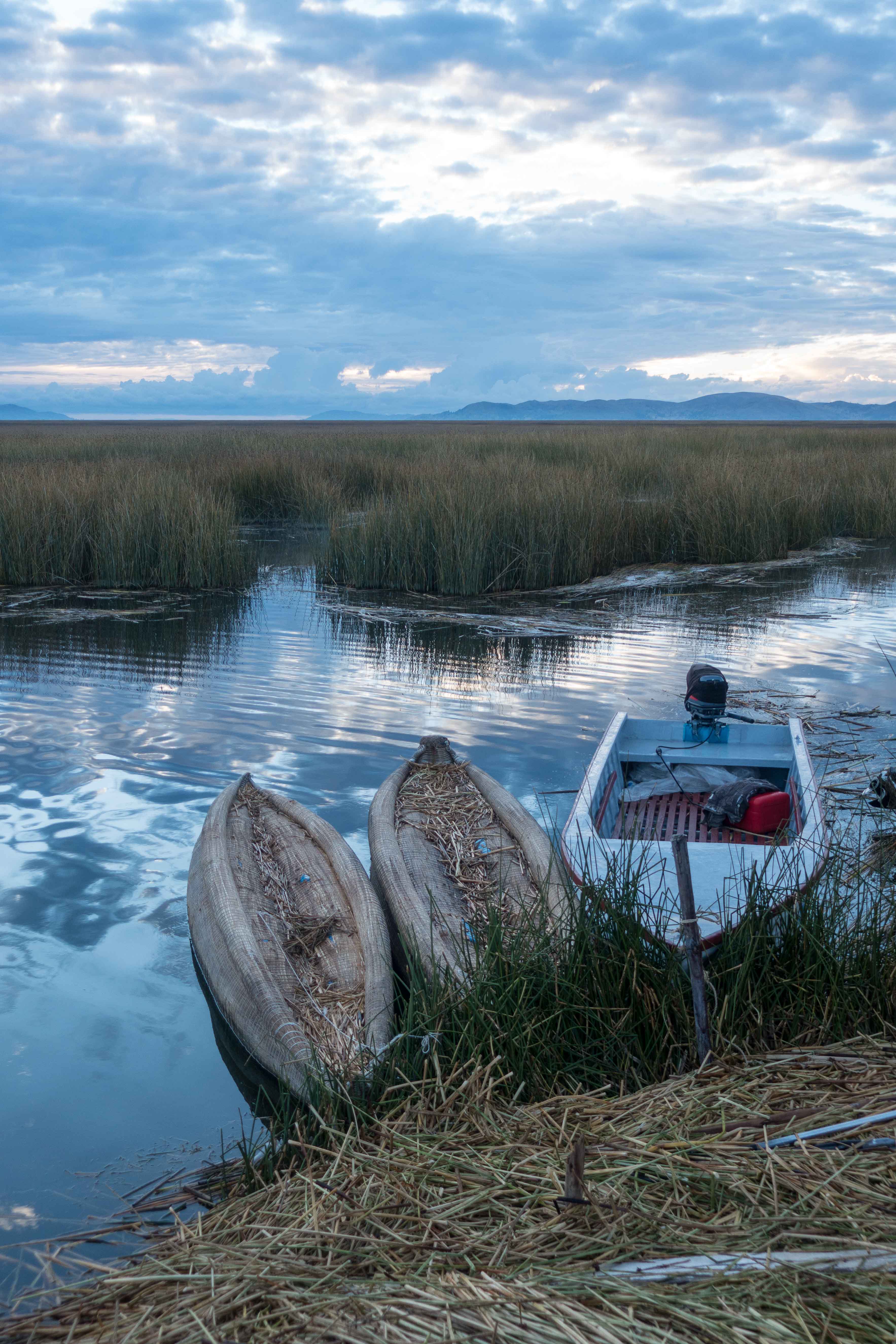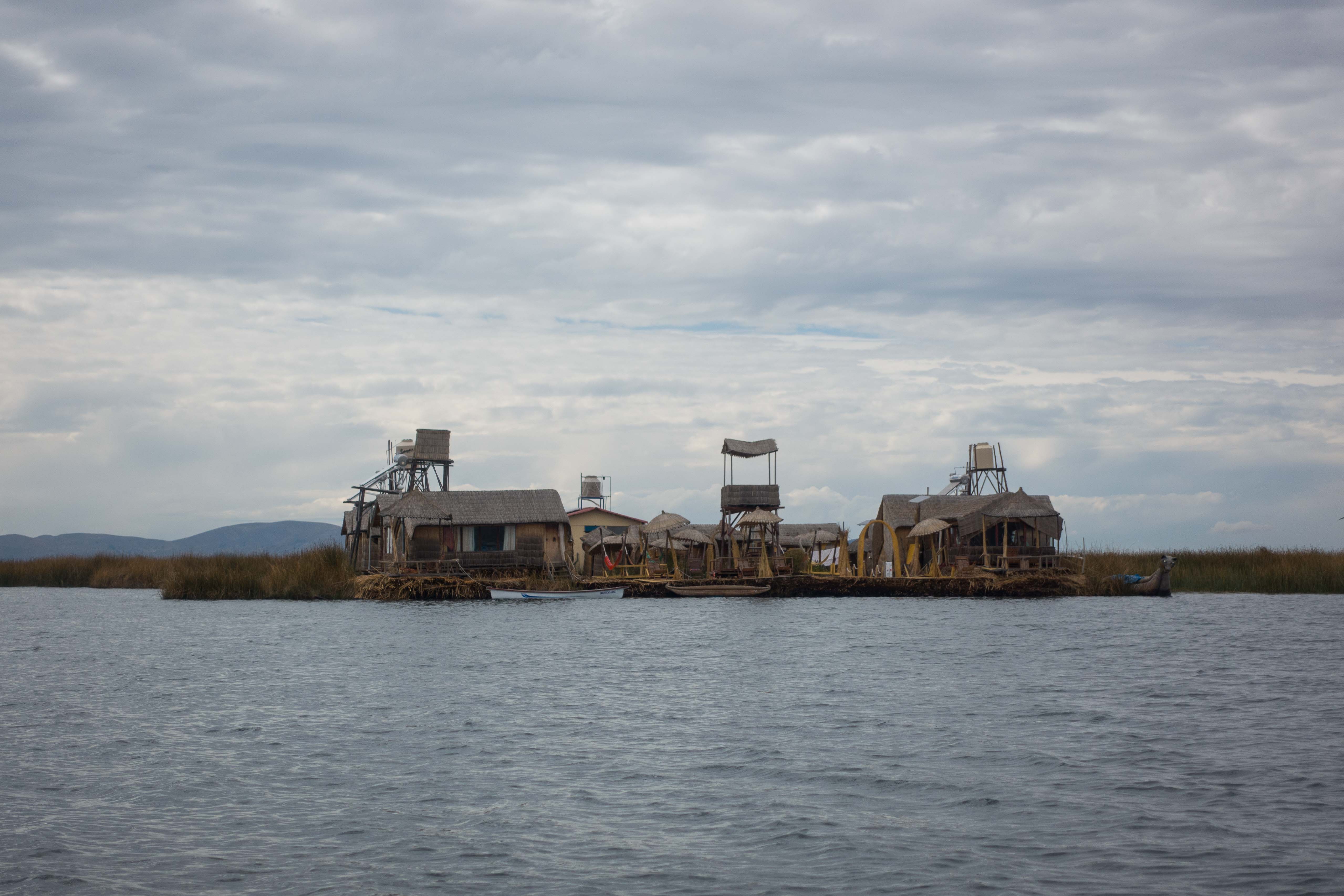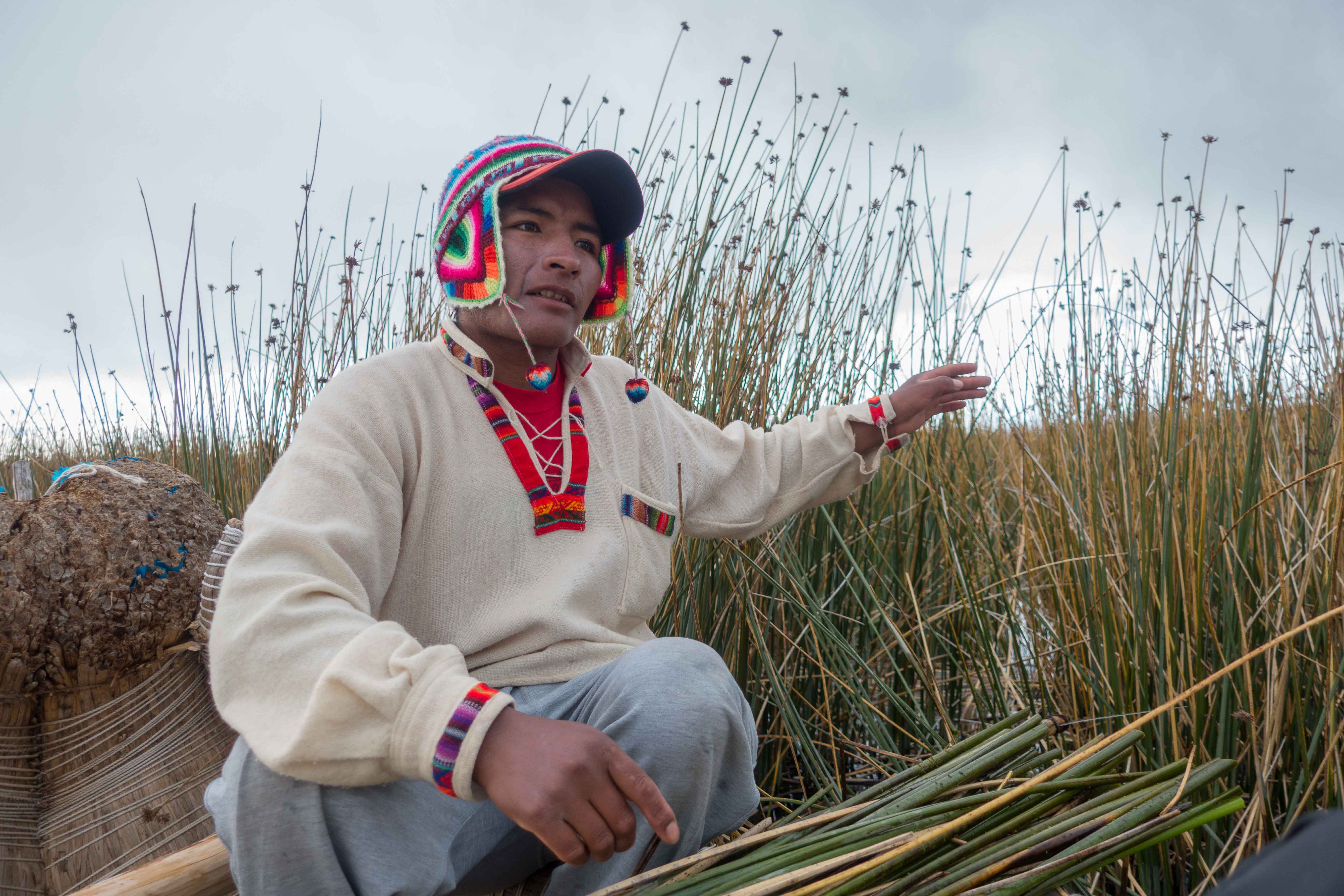 The Uru people use bundles of dried Totora reeds to make reed boats (balsas), and to make the islands themselves. The larger islands house about ten families, while smaller ones, only about thirty meters wide, house only two or three families.