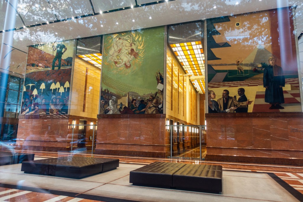 Unless you work at Bank of America, not many people have been inside the building. The lobby is open to the public and has some unique pieces of art that people are talking about.