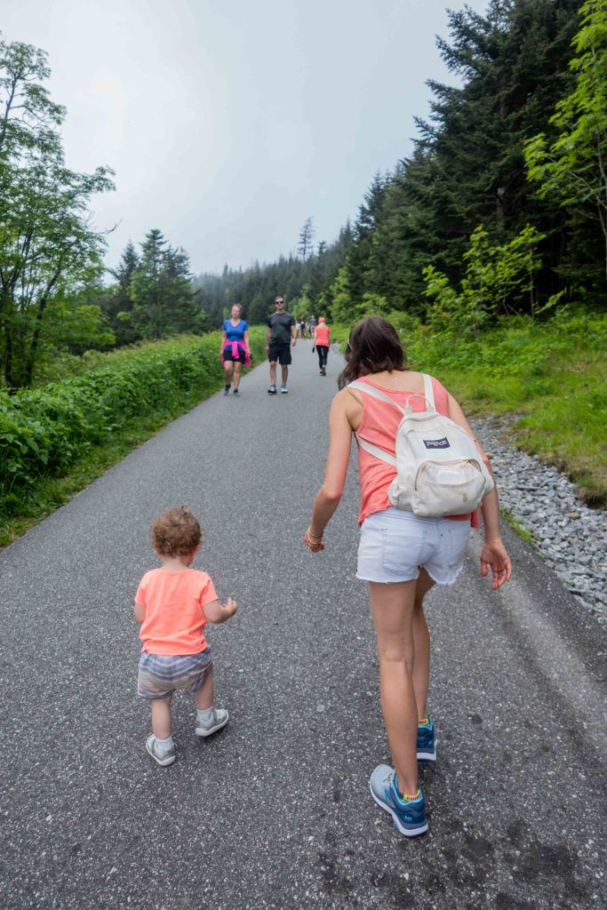 The observation tower on the summit of Clingmans Dome offers spectacular 360° views of the Smokies and beyond for visitors willing to climb the steep half-mile walk to the tower at the top. Ariela hiked about halfway up! People couldn’t believe it and kept praising her!
