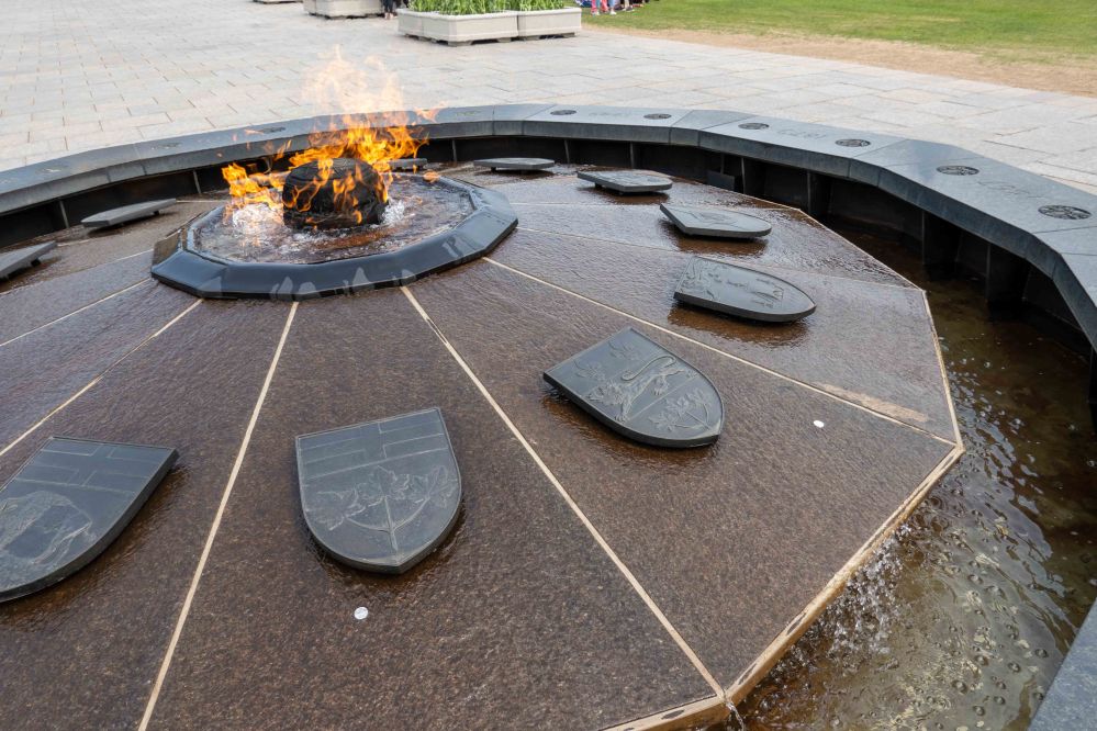 After a filling nutritional meal of basically French fries and gravy, we walk fast to the Canadian Mint (like in coin factory, not like the herb). We had tickets for the 3 pm tour, so we could not really stop for too long to visit other sites. Still, we stopped briefly at the War Memorial for a photo.