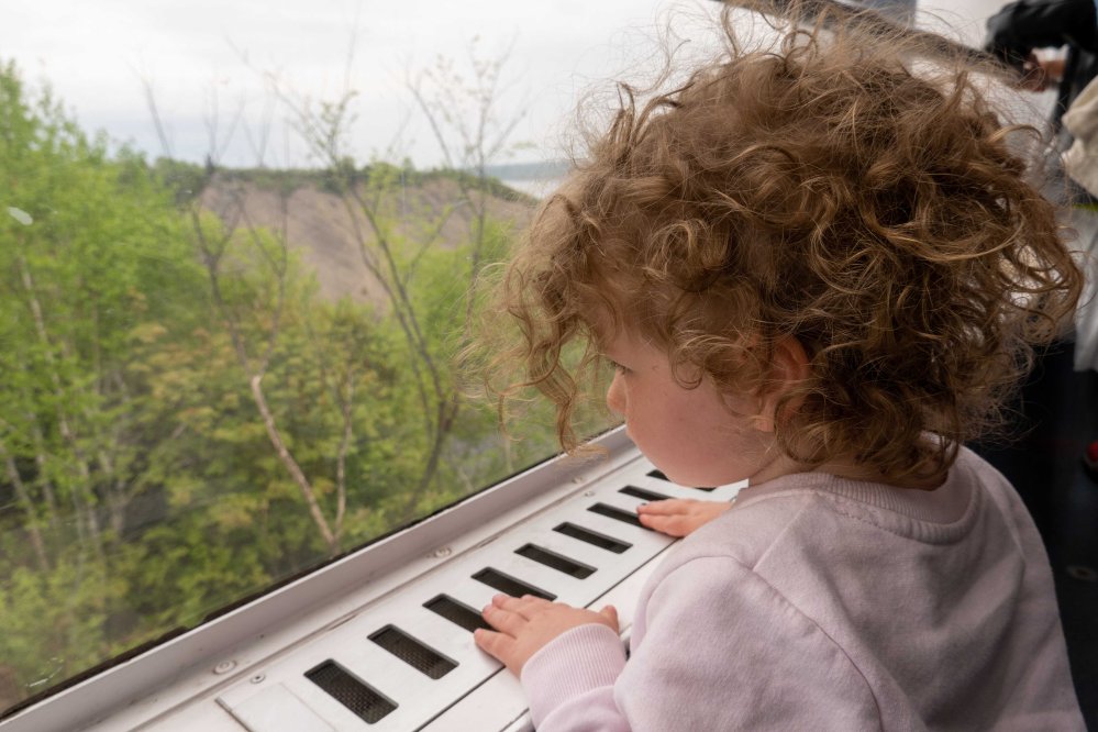 The waterfalls are 83 m (272′) tall, a full 30 m (99′) higher than Niagara Falls. We took the cable car down as the stairs were closed during our visit. Ariela looooved the cable car.