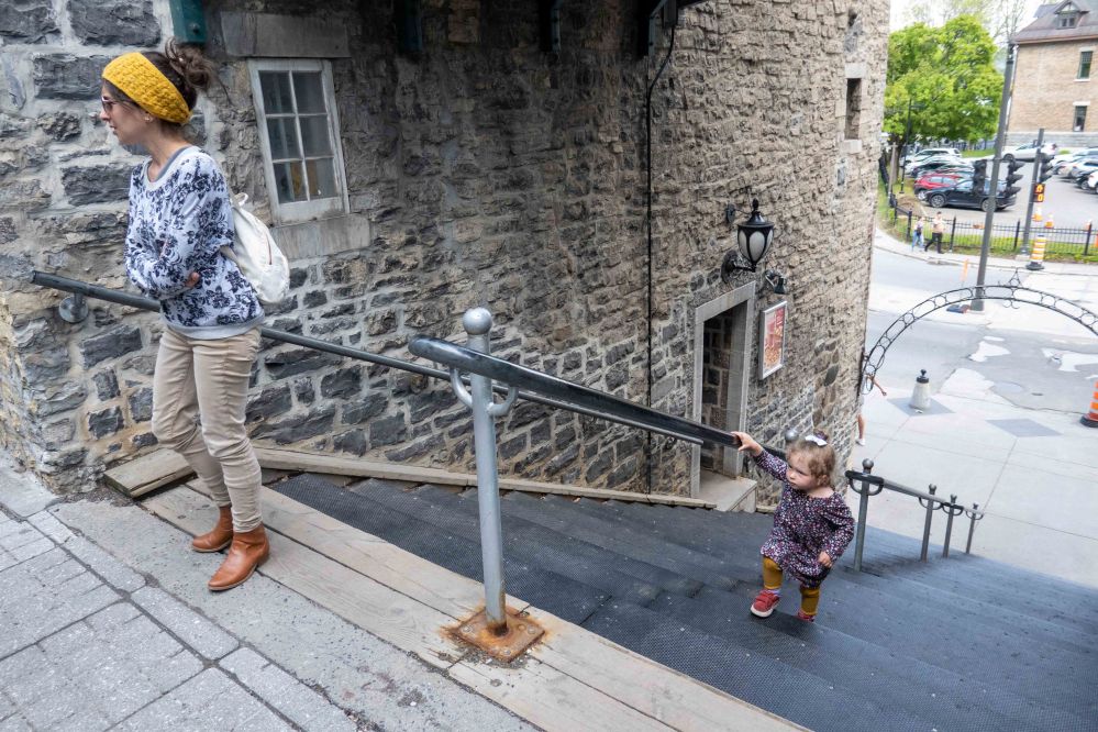 We started walking towards the Petit-Champlain district. Petit-Champlain is snugged along the base of Cap Diamant in Old Québec’s lower town. Close to the banks of the Saint-Lawrence River, and a short walk from the Québec City cruise port, as well as the marina in Old Port.