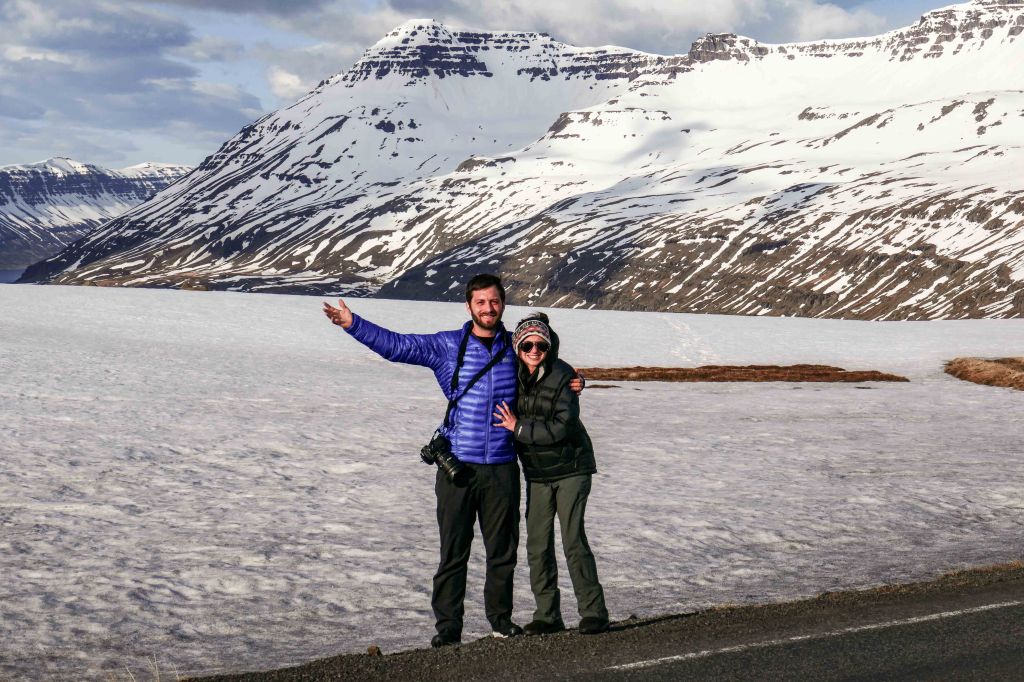 In order to get to the town you need to drive across the top of the Fjord, which is covered in snow.