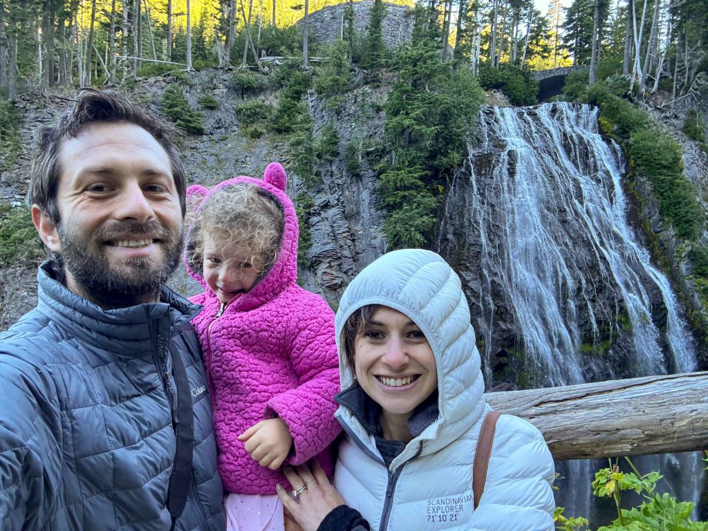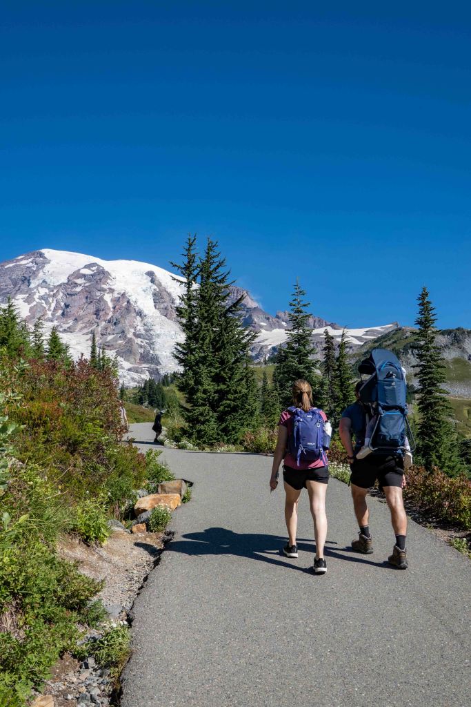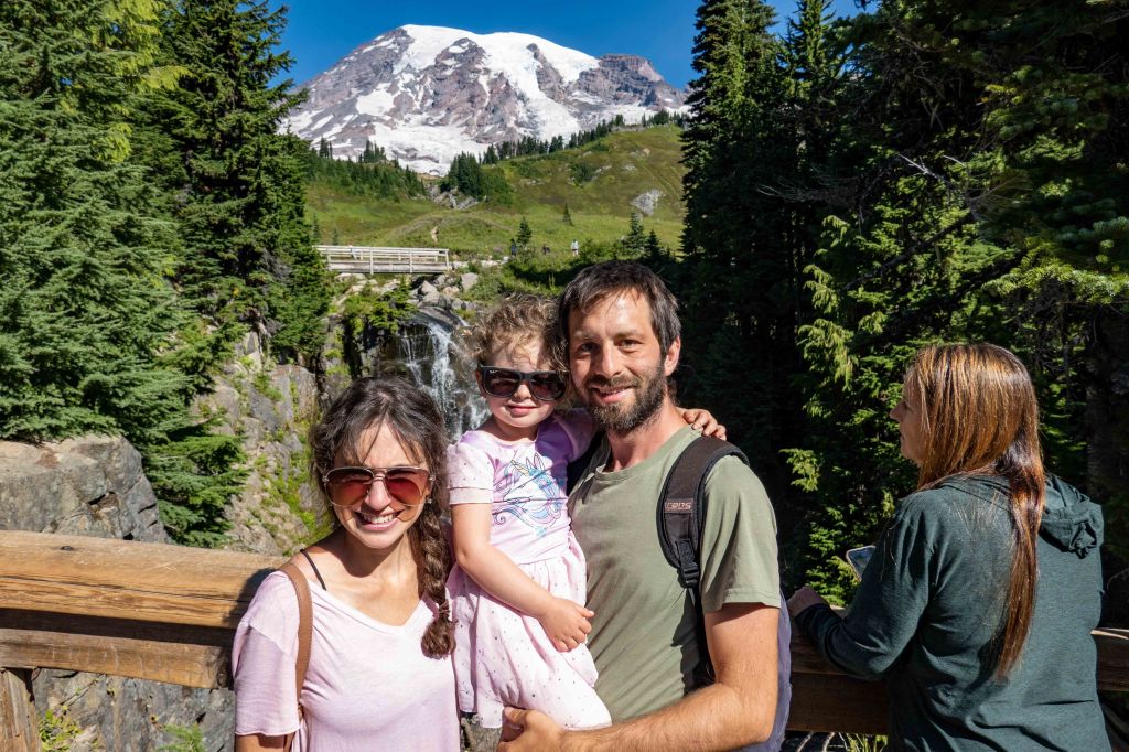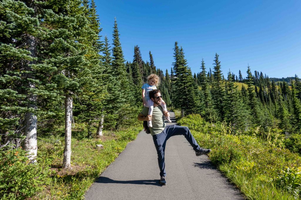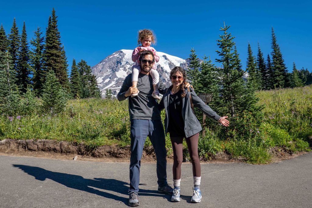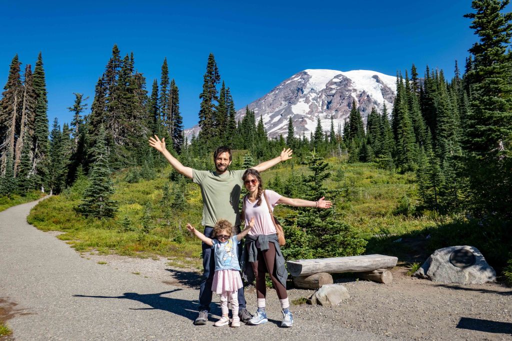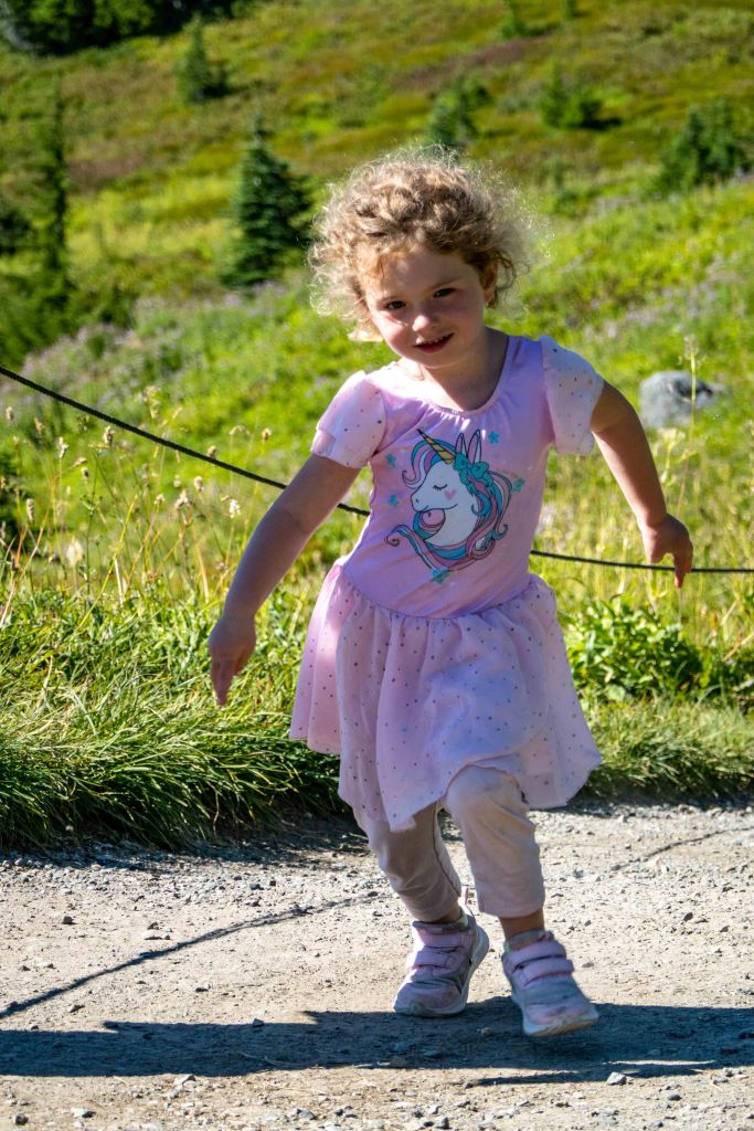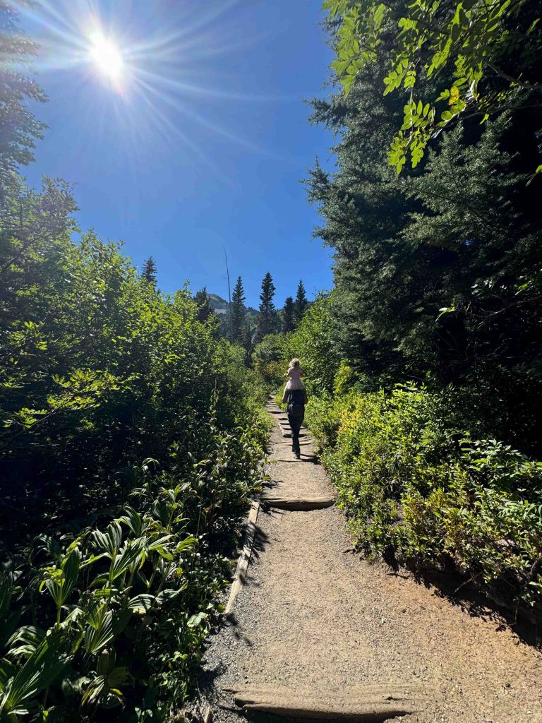 The path along this hike was paved and very easy to do and the weather became hot! The views of Mt Rainier along the way are stunning. Ariela did so great in this hike! With just some of “can you please carry me on your shoulders, daddy?”
