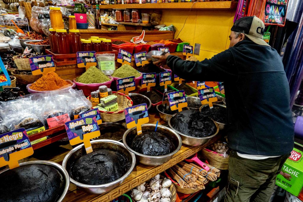 One of the main foods sold here is of course Mole. From the Nahuatl language mōlli, meaning ‘sauce’, is a traditional sauce and marinade originally used in Mexican cuisine. In contemporary Mexico the term is used for a number of sauces, some quite dissimilar, including mole amarillo or amarillito (yellow mole), mole chichilo, mole poblano, mole almendrado (mole with almond), etc…