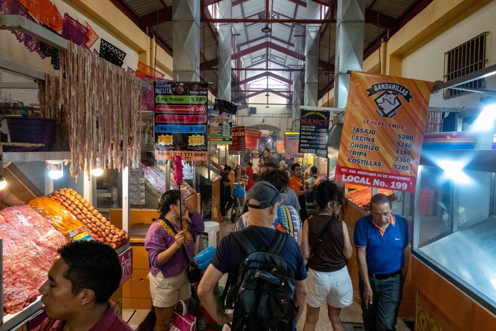 Across the street is another marker called “20 de Noviembre”. This market has a very famous corridor called the “Smoke Hall”.