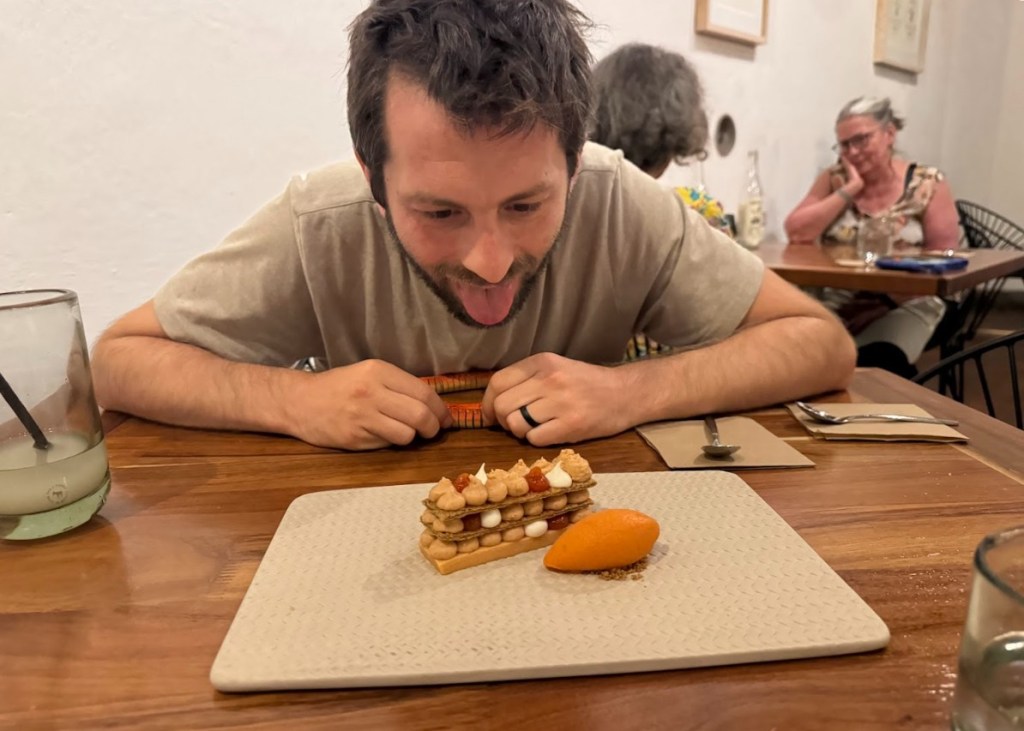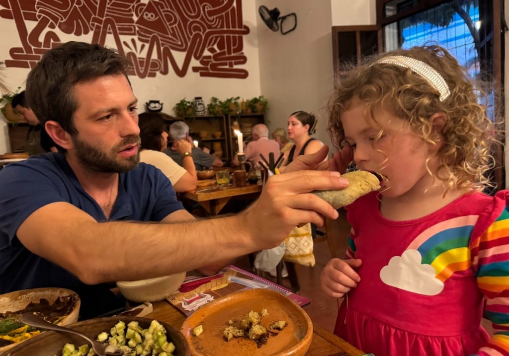 The restaurant had a great rooftop bar, but unfortunately, it was all booked for another week. Still, we were able to enjoy our dinner indoors with a salsa freshly made at our table! But for being one of the top restaurants, we were shocked when Eitan found mold on the parmesan cheese for Ariela’s pasta – fortunately he found it before Ariela ate any and they quickly brought Ariela a new pasta.