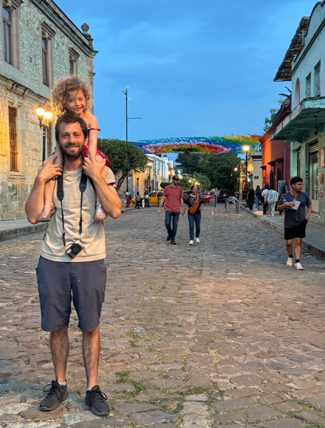 Eitan came back to pick up Ariela and Sarah and we started the walk together towards the restaurant while enjoying the beautiful and colorful streets of Oaxaca.