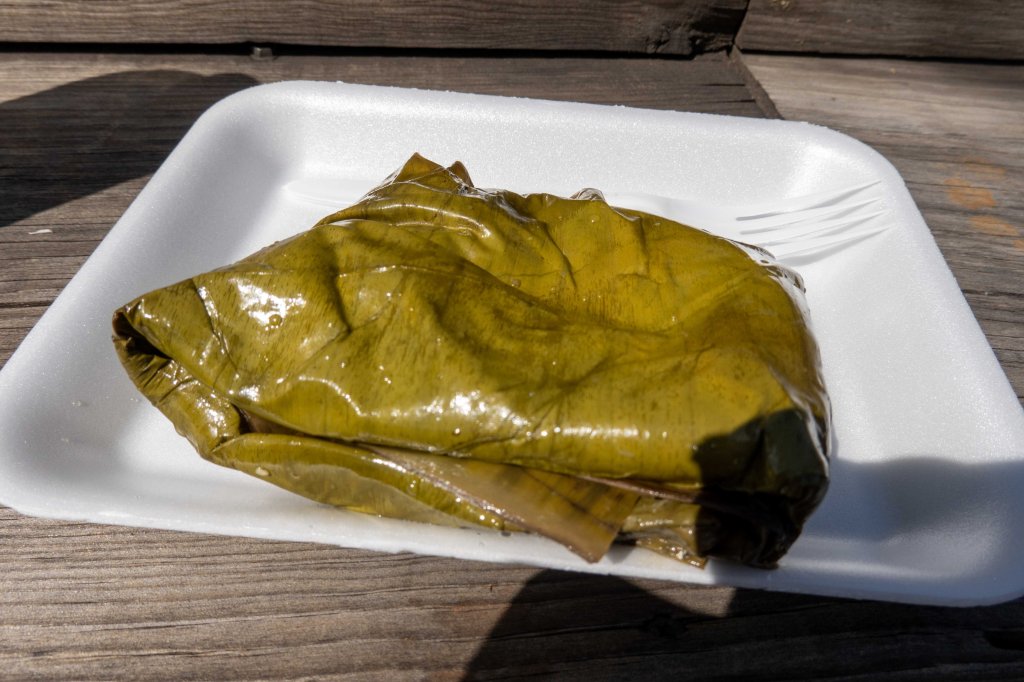Eitan also got a Chicken Mole Oaxaqueno Tamal, which is his favorite. The Oaxaca variety uses a banana leaf instead of a corn leaf. It is way more moist and delicious.