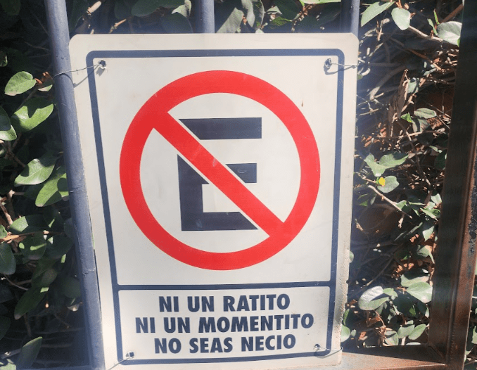 Pic of the Day: This No-Parking sign was very funny to Eitan as it really encompass the Mexican culture. It literally translated to “Don’t Park, not even a little bit, not just a quick moment, don’t be stubborn”